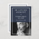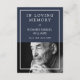 Cartão de oração azul marinho para um funeral onde você pode adicionar uma foto do seu amado. No verso você pode escrever uma oração sobre um fundo branco comum com um quadro azul fino.
