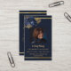 Um fundo azul escuro, uma imagem falsa de ouro e espaço para sua foto. Decorado com flores azuis. Personalize e adicione nome, datas e texto. Texto do ouro.