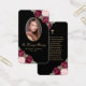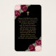 Cartão de memória floral preto e dourado/cartão de oração fúnebre com dentro de foto um quadro dourado adornado com rosas de cor-de-água vermelha rosa e borrado e flores do hálito do bebê em um fundo preto comum.