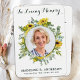Simpatia de girassol Eucalyptus moderna Cartões de oração funerários. Este simples, mas elegante cartão de oração memorial apresenta um eucalipto verde moderno e um elegante design de girassóis. Frente "In Loving Memory" Personalize este cartão de oração do funeral memorial com a foto, o nome e as datas de seus entes queridos e o sentimento. Poema 'Miss Me', que pode ser personalizado, por favor, contacte se quiser uma design com um poema específico que não. Este cartão de oração memorável será um guardião precioso, para os serviços funerários e para a celebração da vida. COPYRIGHT © 2020 Judy Burrows, Black Dog Art - Todos Os Direitos Reservados. Cartão de Oração Funeral de Girassol Eucalyptus Foto