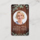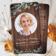 Cartões de Oração Funerária de Sempai com Madeira Rústica e Eucalipto. Este cartão de oração funerária memorial rústico, porém elegante, apresenta um design de madeira rústica com folhagem de eucalipto. Frente "Em Memória Amorosa" Personalize este cartão de oração funerária memorial com a foto, nome e datas de seu ente querido e sentimento. Verso ~ Poema 'Me Sinta', que pode ser personalizado, por favor entre em contato se desejar um design com um poema específico diferente deste. Este cartão de oração funerária memorial será um precioso souvenir para serviços funerários e celebração da vida. DIREITOS AUTORAIS © 2020 Judy Burrows, Black Dog Art - Todos os Direitos Reservados. Cartão de Oração Funerária Memorial com Madeira Rústica e Folhagem.