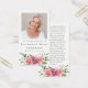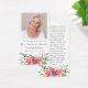 Este cartão poema memorial pode ser entregue como guardião numa Celebração da Vida ou num serviço funerário ou enviado como homenagem especial a quem não pôde estar presente. Este cartão pode ser personalizado com uma foto favorita e sua escolha de oração ou poema. A fotografia é para fins ilustrativos e pode ser alterada para uma de vocês.