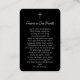 Dimensões de cartão de visita: 3,5" x 2,0". Esta simples modelo de um cartão de oração memorial sobre um fundo preto clássico pode ser dada como um guardião de uma Celebração da Vida ou do serviço funerário ou enviada como uma homenagem especial àqueles que não puderam comparecer. Personalize este cartão com uma foto favorita e sua escolha de oração ou poema na parte traseira do cartão. Fácil de personalizar.