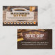 Imaginem o aroma irresistível de mistura de café recém-feita com o calor doce de pastéis recém-cozidos, convidando os clientes a se deitarem. Se seu compro de café exumenta aquela atmosfera acolhedora e acolhedora, por que não encorajar os clientes a continuar voltando com um cartão de fidelidade? Um cartão de café grátis atraente para compres de café e cafés. O design tem toques de madeira rústicos, um fundo compre de café desvanecido, tudo em tons castanhos ricos. No verso está um ponto para a sua localização, número de telefone, correio eletrônico e Web site. Projetado para capturar a essência do seu café, este cartão não somente elevará sua imagem profissional, como também encorajará novos e repetidos amantes do café a virem o comprar java em seu compro.