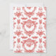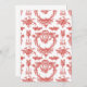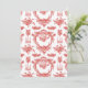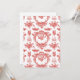 Um cartão de painel com um toile rococó personalizado em vermelho morango sobre branco. O verso é deixado em branco para suas próprias palavras ou personalização