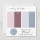 Cartão de Paleta de Cores Dusty Blue Mauve e Blush Pink - Uma paleta de cores para um casamento com combinação de cores azul empoeirado. Amostras de cores com códigos hexadecimais. Veja toda a funcionalidade desta paleta de cores em: