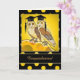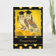 Um cartão de parabéns de graduação humorístico bonito com pintura original de duas corujas em ouro, amarelo e preto.