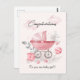 Bem-vindos a uma nova chegada doce com este charmoso cartão de parabéns de menina, com um design de aquarela macia de um carrinho rosa, pacificador, botas e sotaques florais. Os delicados tons cor-de-rosa e esbranquiçados fazem dele perfeito para celebrar a alegria de uma bebê recém-nascida. Ideal para a família, amigos ou colegas de trabalho enviar desejos calorosos nesta ocasião precioso. Adicione sua própria mensagem ou nome totalmente personalizável para um toque pessoal!