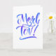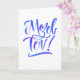Um cartão de parabéns, com letras à mão e floreios numa paleta de azul e roxo, é adequado para congratulações por ocasião de nascimentos, casamentos, bar e bat mitzvahs e muito mais.