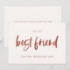 Um cartão de presente simples e minimalista para escrever uma mensagem pessoal e sincera para sua melhor amiga no dia do casamento dela. Totalmente personalizável com suas cores favoritas. Você pode adicionar uma mensagem no verso ou deixá-lo em branco se preferir escrever sua mensagem à mão posteriormente.