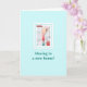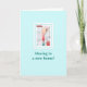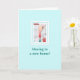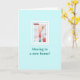 Este Cartão de Parabéns Nova Casa? apresenta uma colheita caprichosa de aquarela e lápis colorido de um apartamento e casa, e diz, "Mudando para uma nova casa?" E dentro, "Parabéns!"