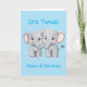 Cartão de parabéns dobrado para bebês gêmeos - são gêmeos! Celebre a chegada de bebês gêmeos com este cartão de saudação adorável e personalizável! A frente apresenta dois pequenos elefantes doces e a mensagem "São Gêmeos", com espaço para personalizar o cartão com os nomes dos gêmeos. Dentro, uma mensagem sincera diz: "Duas vezes a risada, duas vezes a alegria — que bênção, dois garotos! Parabéns nos seus belos filhos gêmeos! Desejando à sua família alegria infinita, amiguinhas confortáveis e memórias inesquecíveis enquanto seus meninos crescem lado a lado." - personalize o texto conforme necessário. Perfeito por acolher gêmeos recém-nascidos, este cartão é um encantador guardião para os orgulhosos novos pais. Ideal para chás de fraldas, para o nascimento de parabéns gêmeos, ou para enviar desejos calorosos a uma família em crescimento. Projetado por Best Baby Gifts - dado com amor.