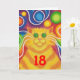 Querida Groovy! Um gato listrado amarelo e laranja com bigodes giratórios e um fundo de arco-íris psíquico com padrão. Cartão de saudação com um design personalizável amarelo, laranja, vermelho, azul, verde, rosa, roxo e branco para que você personalize com seu próprio texto, imagens e ideias.O texto pode ser facilmente alterado usando o modelo fornecido ou clique no botão 'Personalizar o texto' para fazer mais alterações. Um desenho de lápis colorido digitalmente melhorado por Jess Perry.