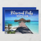 Convide amigos e colegas para um Partido da Reforma Especial com este cartão de convite. A frente é projetada com uma configuração tropical azul oceânica e texto: Convite de festas de aposentadoria. O lado inverso inclui o Nome da Pessoa, Data da Parte, Hora, Local e Detalhes de RSVP em um plano de fundo azul correspondente. Para personalizar, basta inserir seus detalhes no modelo, substituindo o texto de exemplo.