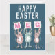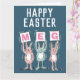 Cartão de Páscoa para alguém com um nome de 3 letras. Divertido cartão de Páscoa com ilustração de coelhos em rosa e azul. Os coelhos estão segurando cartões para soletrar o nome.