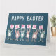 Cartão de Páscoa para alguém com um nome de 6 letras. Divertido cartão de Páscoa com ilustração de coelhos em rosa e azul. Os coelhos estão segurando cartões para soletrar o nome.