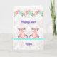 Duas corujas bonitinhas segurando cestas de Páscoa, num fundo floral, flores coloridas bonito no topo do cartão, e flores florais na cabeça. Design perfeito para aquele conjunto de gêmeos na sua lista. Obrigados à hungryjpeg para alguns dos elementos da design.