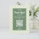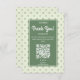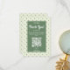Aumente o contato pessoal de sua empresa com nosso elegante design de cartão "Obrigado" editável. Criada para pequenas empresas que oferecem produtos feitos à mão, esta placa combina perfeitamente nostalgia e elegância. Apresentando um encantador padrão repetido de pontos em forma de diamante em cores retrorreflectoras de verde, amarelo e vermelho, colocados contra um pano de fundo verde claro e suave, ele evoca um senso de atração do eterno. O que o diferencia é o código QR integrado que simplifica o processo de revisão. Aprecie seus clientes com essa placa maravilhosamente projetada, encorajando-os a compartilhar seus valiosos comentários sem esforço. Aumente a reputação de sua empresa e fortaleça as relações com os clientes com cada gesto ponderado.