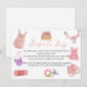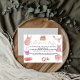 Um adorável cartão de pedido de livro para chá de bebê boho clothesline. Os visitantes são convidados a trazer um livro infantil novo ou usado em vez de um cartão.