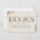 Tema de rifa de fraldas de chá de bebê boho com letras "LIVROS" em textura de couro falso inspirada decorada com cactus boho e outros desenhos botânicos. Desenhos botânicos nos cantos. Fundo inspirado em aquarela.