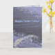 Cartão personalizado do Dia do Pai com pesca, um espaço para foto e texto interno personalizável. Cana de pesca com linha e bóia e um peixe saltando fora da água.