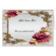 Lindas rosas vermelhas e moldura com padrão de folhas douradas. Deixe seus convidados saberem onde devem se sentar com este lindo cartão de posicionamento. Personalize o cartão alterando o texto nos campos fornecidos na frente e no verso. Você pode alterar o estilo da fonte, tamanho, cor, bem como o tipo e estilo de papel.