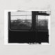 Foto em preto e branco das janelas do trem em movimento com uma borda no estilo de borda.