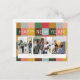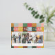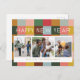Este design de cartão de Ano novo é um cartão com fotos múltiplo com 3 fotos e um fundo de verificação divertido, moderno e colorido.