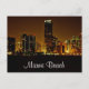 Bem-vindo a Miami Beach, Flórida! Esta divertida carta de posto mostra uma vista noturna do horizonte de Miami Beach com as luzes brilhando da bela costa da praia.