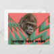 Cartão poste com um gorila engraçado e suspeito espreitando em volta de um cobrir projetado em um padrão de fenda zigzag rosa e verde. Personalize com seu próprio texto.