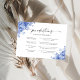 Cartão de Predição de Chá de fraldas Floral de Porcelana Azul. Este na moda e elegante Convite para Chás de fraldas apresenta uma linda cor d'água pintada manualmente Blue Porcelain Floral. Localize itens correspondentes na Coleção Floral do Porcelana Azul.