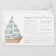 Este cartão horizontal de Previsões e Dicas para Bebê apresenta um design simples e elegante, perfeito para qualquer chá de bebê. No lado esquerdo, há uma ilustração suave de um barco à vela em aquarela, adicionando um toque náutico suave sem ser excessivamente temático. O layout é minimalista, com fontes e linhas cinzas em uma mistura de escrita manual delicada e fontes serifadas clássicas para um visual refinado e atemporal.