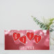 Ilustração romântica com corações vermelhos pendurados com letras "GIFT" em fundo de galho.