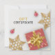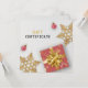 Design de férias de alta qualidade elegante com flocos de neve glamourosos de ouro brilhante, bolas de árvore de Natal vermelhas e uma caixa de presente vermelha sobre fundo de cinza leve. Este cartão de presente festivo sazonal é perfeito para a sua pequena empresa ou para oferecer amigos e família.