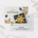 Design de férias de alta qualidade elegante com flocos de neve glamourosos de ouro brilhante, bolas pretas de árvores de Natal e uma caixa de presente preta sobre fundo de cinza leve. Este cartão de presente festivo sazonal é perfeito para a sua pequena empresa ou para oferecer amigos e família.