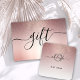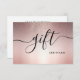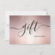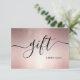 Um moderno e elegante cartão de presente de salão de beleza com glitter rosa de ouro. Tipografia de script preto em chic e moda. Personalize com seu nome e detalhes comerciais. Ótima e eterno opção para cabeleireiro, salão de cabelos, salão de beleza, salão de unhas, maquiagem ou profissional de saúde e bem-estar.