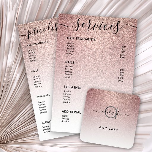 Rose Gold Glitter Salon Price List Service MenuCriado por Natel D
