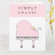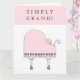 Cartão criativo para mãe, pai ou novos pais com design fofo de tema musical para recém-nascida e piano de cauda rosa.