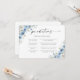 Cartão de previsão de Chá de fraldas de marfim azul Dusty. Este na moda e elegante Convite para Chás de fraldas apresenta uma linda coloração d'água pintada manualmente Dusty Blue Ivory Floral. Localize itens correspondentes na Coleção de Fios de Marfim Azul Dusty.