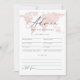 Esta placa de previsão e conselhos de chá de fraldas apresenta um mapa de mundo de cor d'água rosa e uma fonte elegante de script. Esta atividade é a adição perfeita ao seu evento temático viagem ou aventura. Par com qualquer coisa na Coleção CARMEN para um olhar coeso.