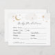 Uma maneira divertida de interagir com os convidados no seu chá de bebê. Peça que seus entes queridos adivinhem as estatísticas de nascimento e características do seu bebê! Itens correspondentes encontrados na loja Zazzle da Adore Paper Co.