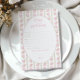 Este cartão de previsões e conselhos para bebês apresenta rosas cor-de-rosa suaves e folhagens delicadas em um design clássico de listras vintage. O fundo claro e neutro mantém a aparência limpa, elegante e atemporal.