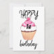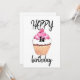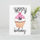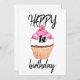 Cartão de primeiro aniversário com desenho de bolo de copo.