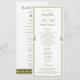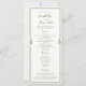 Cartão de programa de casamento verde oliva perfeito para casamentos de jardim, apresentando uma estética elegante e refinada para casais que desejam uma experiência de cerimônia refinada e organizada. Este programa lindamente projetado ajuda a guiar os convidados através do seu cronograma, adicionando um toque polido e coeso à sua suíte de papelaria de casamento.