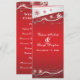 Programa de cerimônia de casamento de inverno com floco de neve branco, cinza prateado e vermelho, apresentando uma faixa ondulada em cinza prateado com estrelas e flocos de neve elegantes vermelhos em um fundo vermelho gradiente brilhante. Moderno e contemporâneo, mas adequado para um casamento tradicional. Este design elegante, sofisticado e estiloso pode ser usado para outras ocasiões especiais, como noivados ou aniversários. Uma escolha perfeita para casamentos de inverno, dezembro ou natal.
