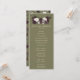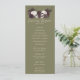 Este cartão de programa de casamento verde-oliva floral gótico apresenta um elegante desenho floral de tinta preta desenhado à mão, caveiras e rosas com sombreamento cruzado intricado em um rico fundo verde-oliva. O verso apresenta um padrão elegante com os mesmos elementos com listras de gradiente. Personalize com os detalhes da sua cerimônia, nomes e data do casamento para uma estética sombria e coesa. Perfeito para casamentos góticos, temas românticos sombrios e celebrações alternativas sofisticadas.