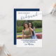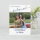 Cartão de casamento personalizado para sua dama de honra com sua própria foto personalizada, roteiro elegante e tema de cor azul e branca. O modelo de foto está configurado para que você adicione sua própria foto à frente. O texto diz "[nome da dama de honra], por favor seja minha dama de honra ... [nome do noivo e eu vamos nos casar, então a próxima pergunta é, você será minha dama de honra? [assine e noiva]". Toda a formulação é editável, exceto a primeira instância da "dama de honra" que é escrita à mão. As cores de tipografia e de fundo podem ser alteradas - clique em personalizar mais - ou envie-me uma mensagem para obter assistência.