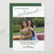 Cartão de casamento personalizado para a dama de honra com sua própria foto personalizada, um roteiro elegante e um tema de cor verde e branca. O modelo de foto está configurado para que você adicione sua própria foto à frente. O texto diz "[nome da dama de honra], por favor seja minha dama de honra ... [Nome do noivo e eu vamos nos casar então a próxima pergunta é, você será minha dama de honra?] [assine e noiva]". Todos os textos podem ser editados, exceto o primeiro caso de "dama de honra", que é feita à mão. As cores de tipografia e de fundo podem ser alteradas - clique em personalizar mais - ou envie-me uma mensagem para obter ajuda.