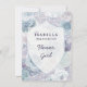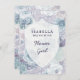 Design de casamento vintage com brasão de água azul floral, com flores pintadas à mão, peônias, rosas e detalhes em aquarela, tudo em um estilo antigo e envelhecido. Um visual chique e moderno para um casamento de primavera, verão ou inverno, com uma paleta de cores pastéis suaves: azul-marinho, lavanda roxo, rosa-bege e verde-menta, com detalhes em folha de azul-gelo empoeirado. Além disso, uma fonte de letra manuscrita moderna e divertida - Cartão de proposta de "Você será minha Dama de Flores?" personalizado para casamento!