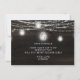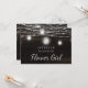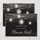 Projeto de madeira de celeiro marrom escuro rústico Oak Ridge, jarras de Mason cintilantes e luzes de corda brilhantes com fios cintilantes de luzes penduradas e jarras em uma textura de madeira rica e profunda com acentos brancos. Com fontes de letra script de tipografia moderna. Um design rústico e elegante no estilo de casa de fazenda country - Casamento Personalizado Você será minha Menina das Flores cartão de proposta!